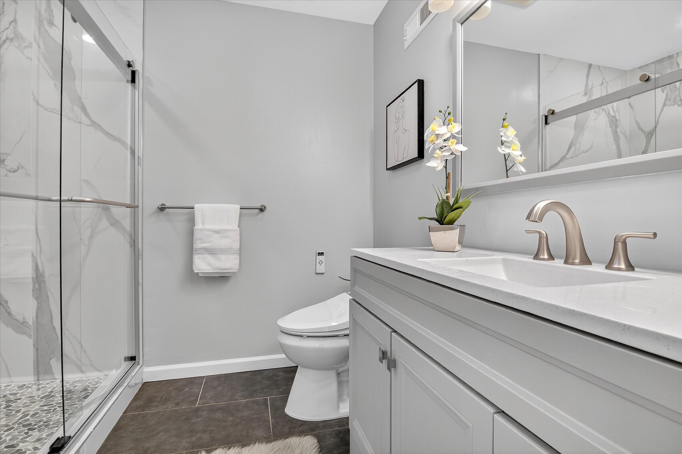 Welcome to 1804 Olney Rd, a hidden gem in the heart of Pimmit Hills. Situated on nearly a ¼-acre (10,000 sq ft) lot, this thoughtfully updated 3-bedroom, 3.5-bathroom home offers charm, functionality, and income potential in one of the fastest-growing neighborhoods near Tysons Corner. Built in 1962, this home features over 2,400 finished square feet with beautiful hardwood floors, a renovated kitchen with quartz countertops, and an open layout that connects the living room, kitchen, and family room. The main level offers two spacious bedrooms, each with a full ensuite bath, while the lower level includes a large recreation room, third bedroom, full bathroom, and a bonus room ideal for a home office or storage. The fully finished basement also features a kitchenette with a cooktop, range hood, fridge, separate washer/dryer, and a private walk-out entrance perfect for guests, extended family, or rental income. The property includes a county-approved accessory living unit in the basement, previously rented for $1,900/month, providing excellent potential for supplemental income. Recent updates include a new roof (2023), new windows, a brand-new full bathroom on the main level, and a new egress window in the basement. Enjoy outdoor living on the rear patio overlooking a spacious backyard oasis. Located just minutes from Tysons Corner, McLean Metro Station (1.5 miles), and major commuter routes including Route 7, Route 123, I-66, and I-495, this home offers unbeatable convenience just 8 miles from Washington, D.C. Don’t miss this incredible opportunity to own a move-in ready home with flexible living space in a dynamic community.